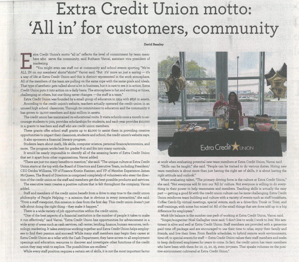 Thank you to the Detroit Free Press for a full feature article about Extra Credit Union being “All In.” Check out the article below.